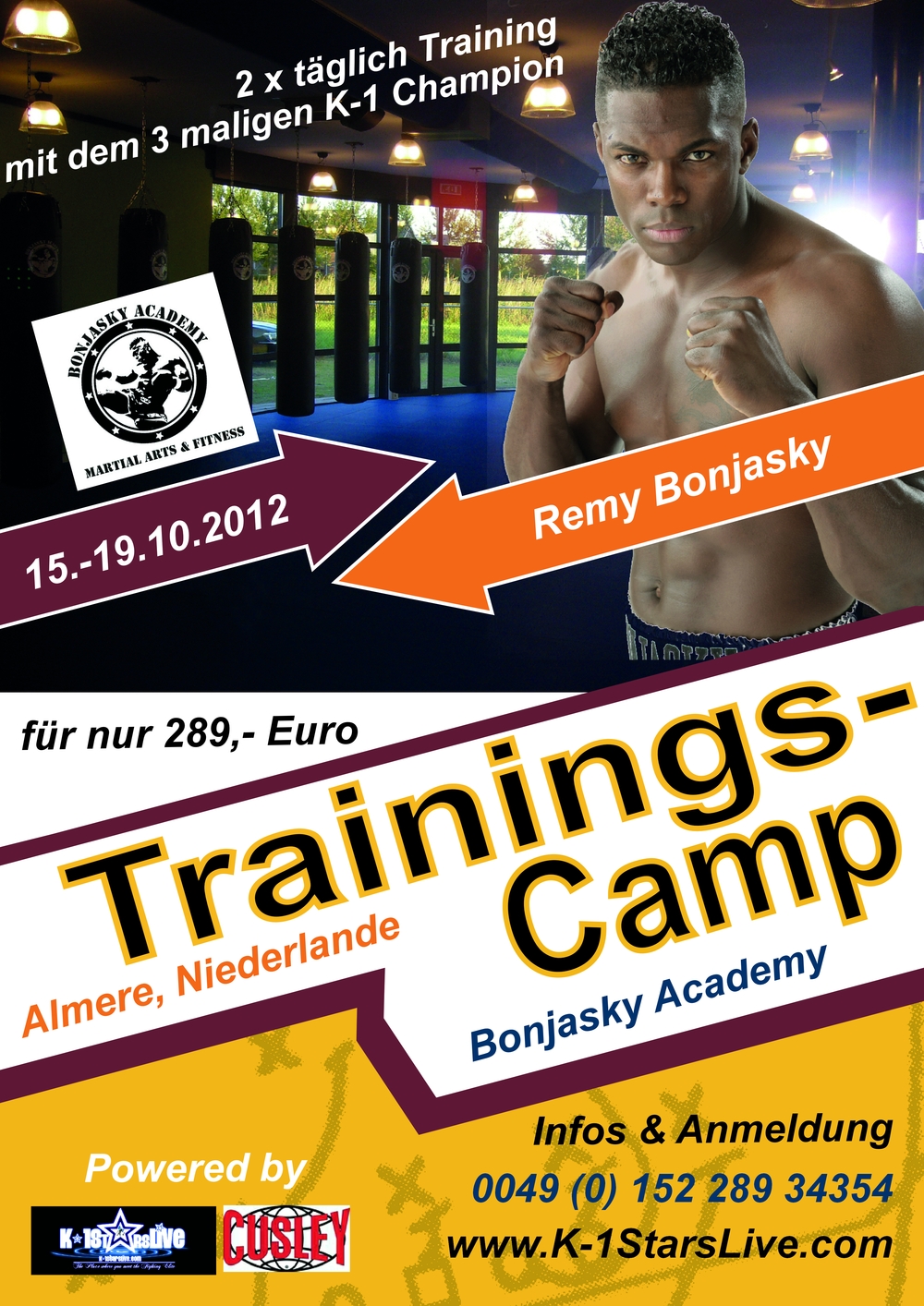 Wer mag, Zeit und Lust hat, der kann vom 15.10.2012 bis zum 19.10.2012 am nächsten K-1 Trainingscamp mit dem 3 fachen K-1 Champion Remy Bonjasky in der Bonjasky Academy in Almere, Niederlande teilnehmen.