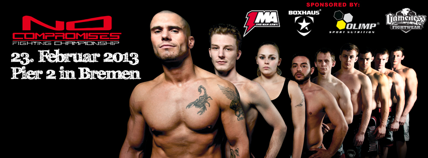 „Keine Kompromisse“ heißt es am 23. Februar, wenn NO COMPROMISES FC mit 18 MMA-Kämpfen, 2 Turnieren und Superfights im Grappling, K1 und Judo im Pier 2 in Bremen sein erstes Event geben wird.