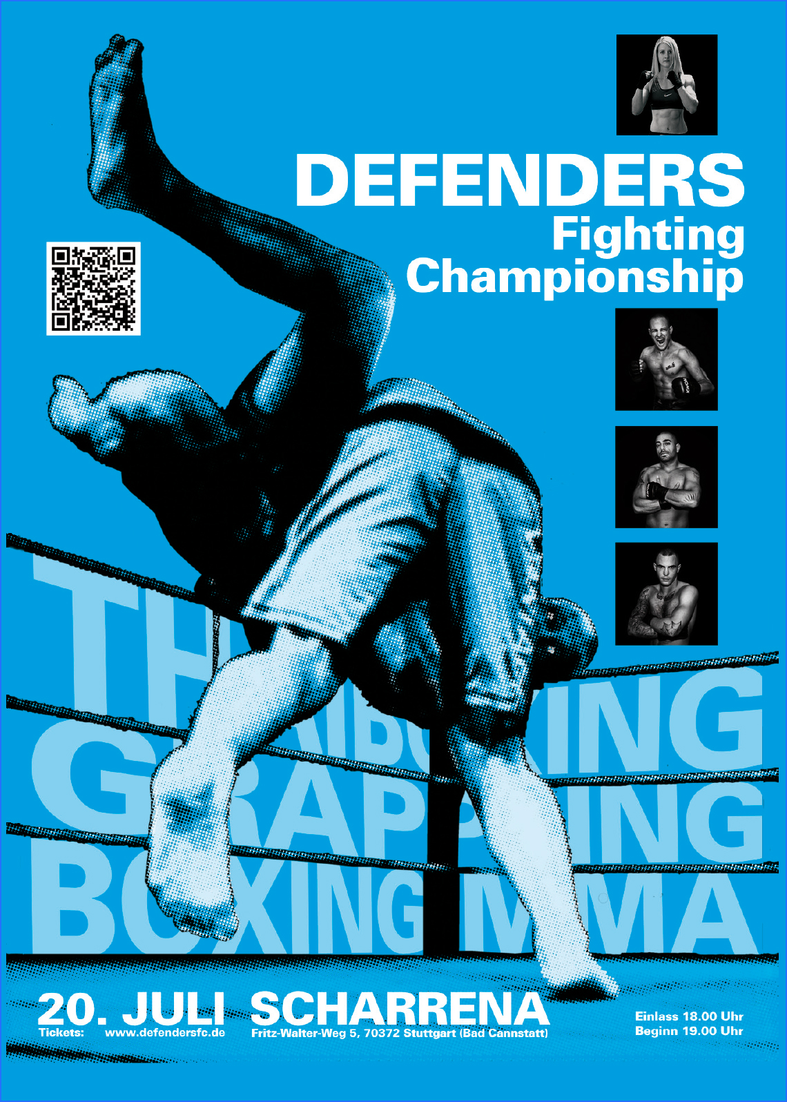 dient dieses Mal die SCHARRena(Platz für 2000 Zuschauer) in Stuttgart-Bad Cannstatt. Einlass ist ab 18:00 Uhr, die Veranstaltung beginnt um 19:00 Uhr. Das Hauptprogramm aus Grappling-, Thaibox- und MMA-Kämpfen wird von Showacts begleitet.